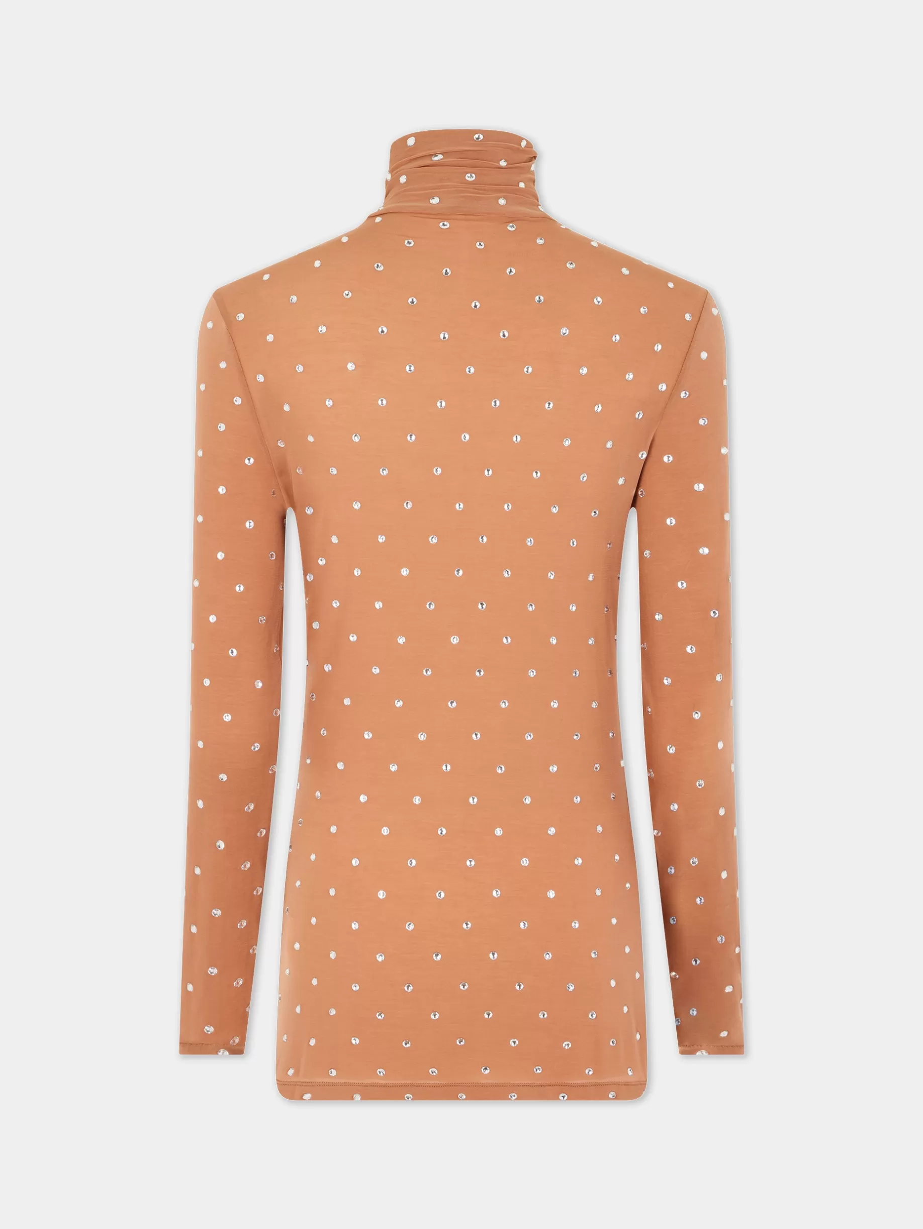Rabanne Crystals-embellished caramel turtleneck top
