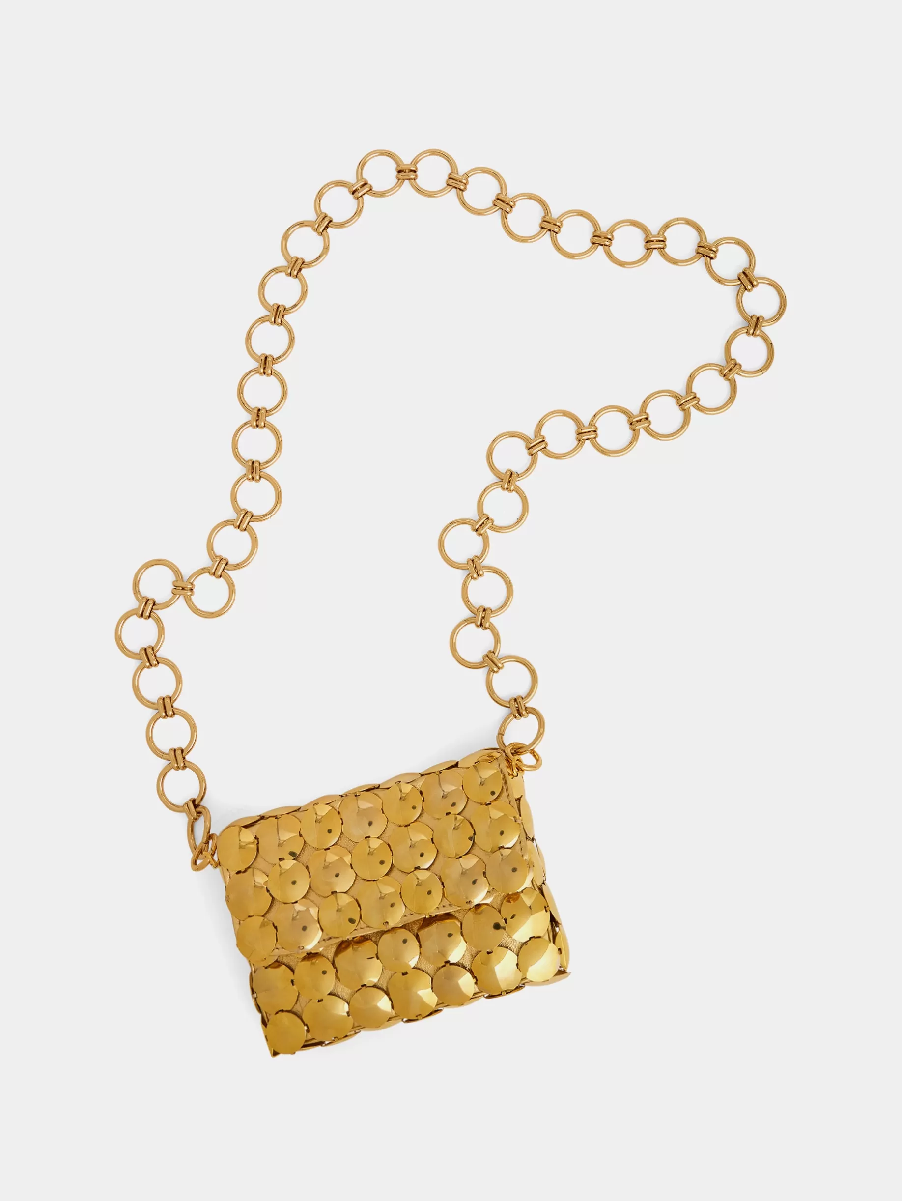 The gold metal bag is from the Fall-winter 2023 collection. This sparkling bag that reflects light is a silver metal sho…
