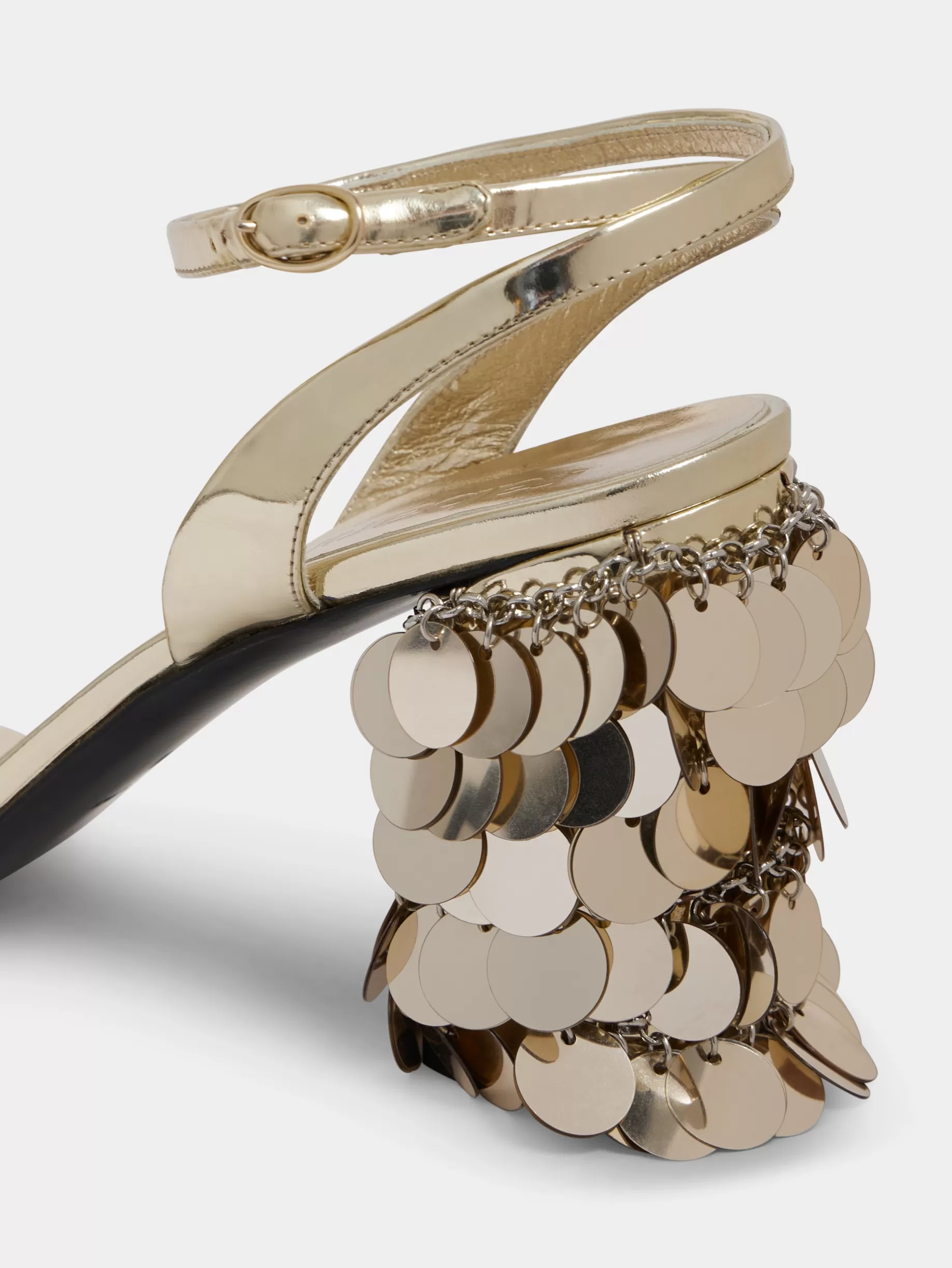 Rabanne Gold sandals with sparkle discs heels