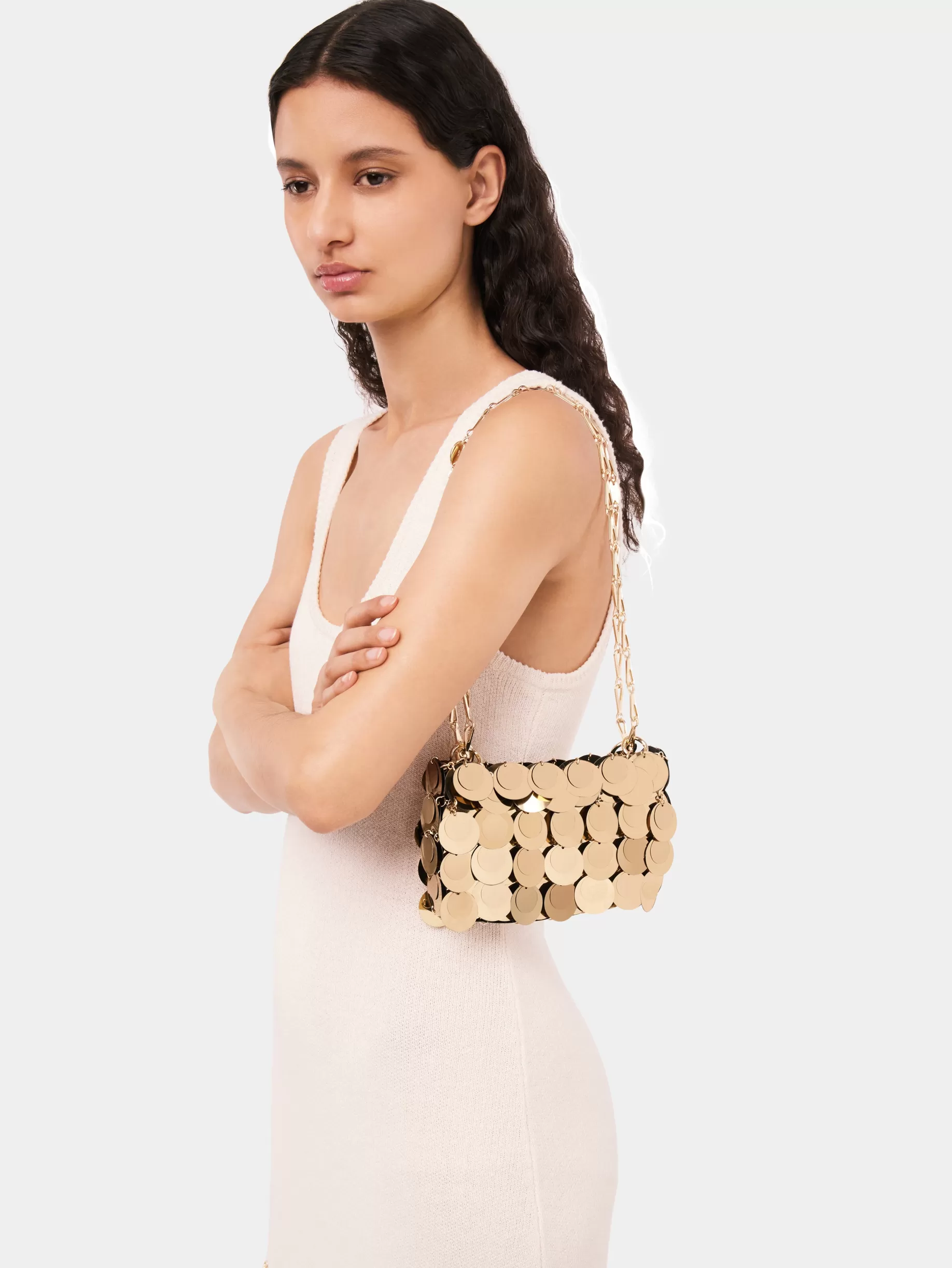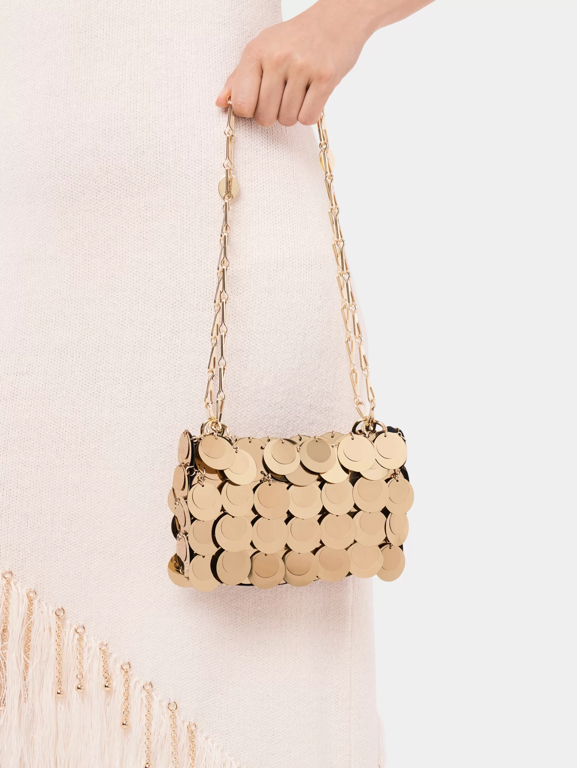 Gold discsGold-plated metal chain with Rabanne logo