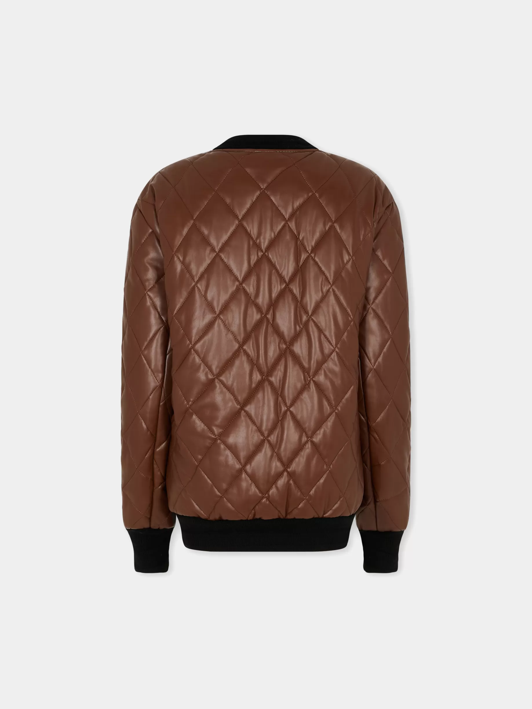Color: ChocolateCotton liningLong sleeves6 silver snap buttons and a flap over a zipper