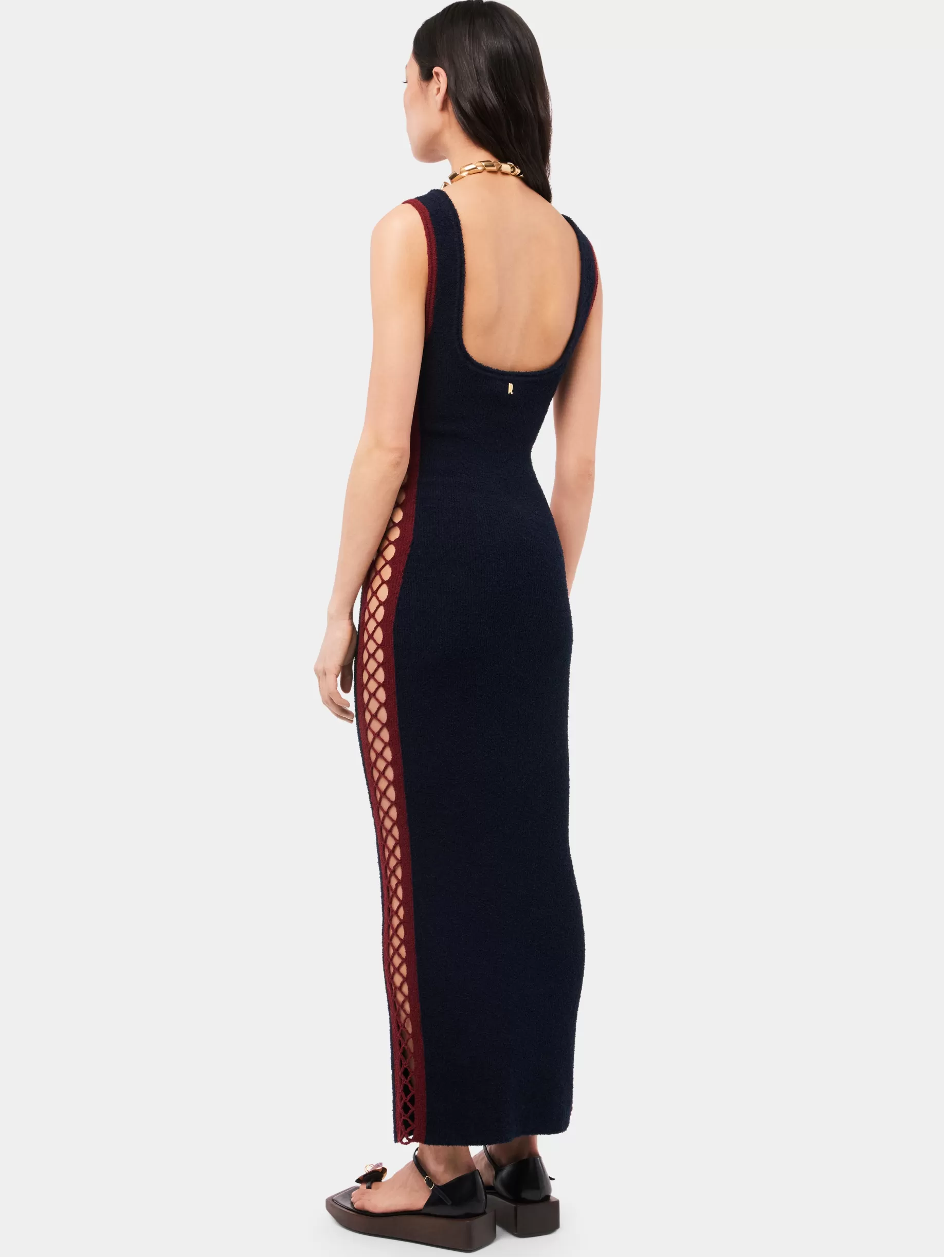 Rabanne Navy eponge dress with crochet details