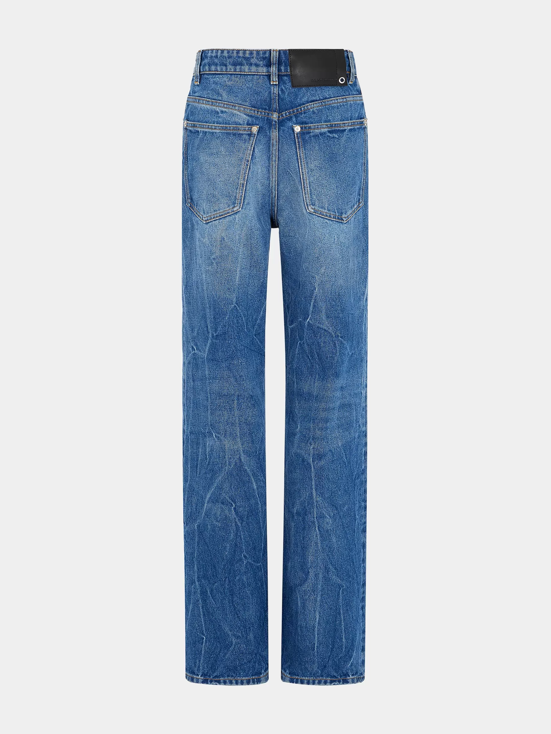 These high-waisted jeans with their metallic discs at the waist are a Maison Rabanne signature, making them a timeless p…